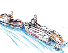 私たちは、「通報から処置するまでの時間を短縮し、生存率の向上を図る」ことをコンセプトに開発を進めてきました。水難現場からの通報を受け、救助するまでの時間をどうすれば短縮できるかが課題でした。現在の救助活動の多くはゴムボートを使用していますが、私たちは、先ず現場へ急行する機材として、「機動力」、「スピード」、「安全性」に優れている水上オートバイを選択しました。