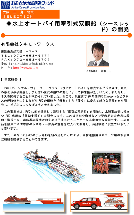 「大阪地域創造ファンド」平成23年度採択事業に選ばれました。